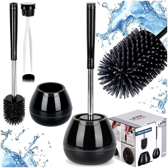 Szczotka do czyszczenia WC toalety silikonowa ze stojakiem szczypcami czarna VILDE 569988