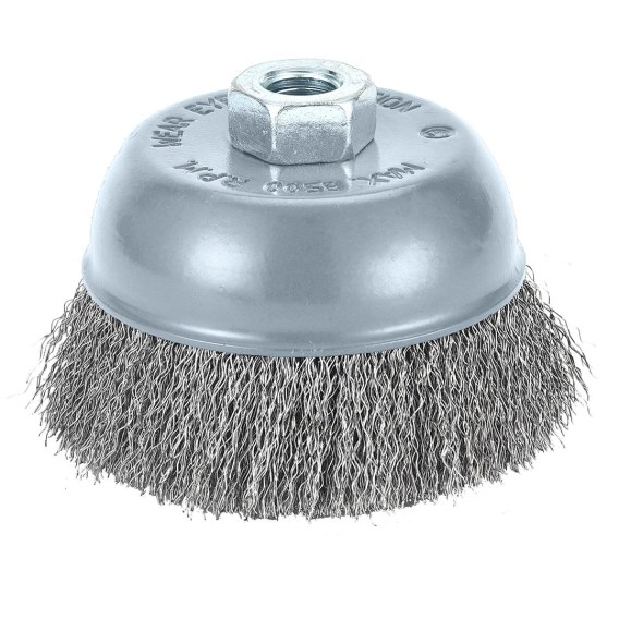 Szczotka druciana doczołowa 100 mm, drut karbowany stalowy, M14, max. prędkość obrotowa: 8500 obr./min, EN 1083-2