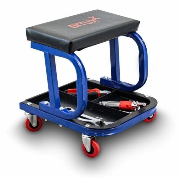 Ten praktyczny stołek warsztatowy zapewnia użytkownikowi wysoki komfort siedzenia oraz ułatwia pracę, gdyż zostały użyte produkty tylko najlepszej jakości. Stołek posiada trzy schowki, dzięki którym zawsze będziesz miał swoje narzędzia pod ręka. Produkt wyposażony został w 4 płynnie działające kółka, które obracają się o 360 stopni, aby umożliwić wydajną pracę. Krzesło warsztatowe stworzone zostało, aby poprawić komfort pracy w warsztacie oraz aby ułatwić pracę.