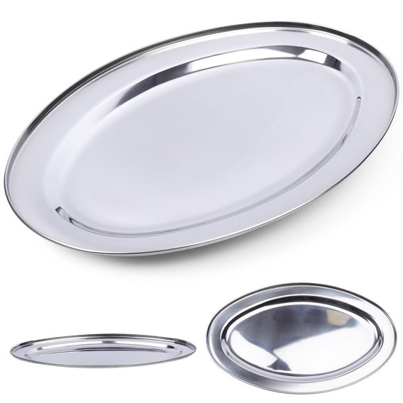 Owalna taca do serwowania dań, kanapek, przekąsek, przystawek oraz ciasteczek. Wykonana ze stali nierdzewnej polerowanej na wysoki połysk. Niezwykle solidna, nie wykrzywia się.