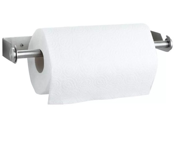Elegancki uchwyt na ręcznik lub folię, z możliwością przyklejenia do powierzchni lub montażu na śrubki.