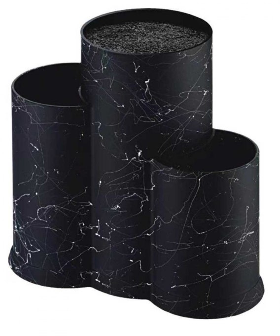 Uniwersalny stojak blok na noże 3 w 1. Trzykomorowy - pozostałe dwie komory można wykorzystać na dowolne przybory kuchenne. Wykonany z tworzywa. Wewnątrz stojaka w środkowej komorze umieszczono wkład z nitek polipropylenu, które umożliwiają przechowywanie noży o dowolnej długości i szerokości jeżeli tylko zmieszczą się w stojaku. Stojak pomieści do 6 noży przeciętnej wielkości.