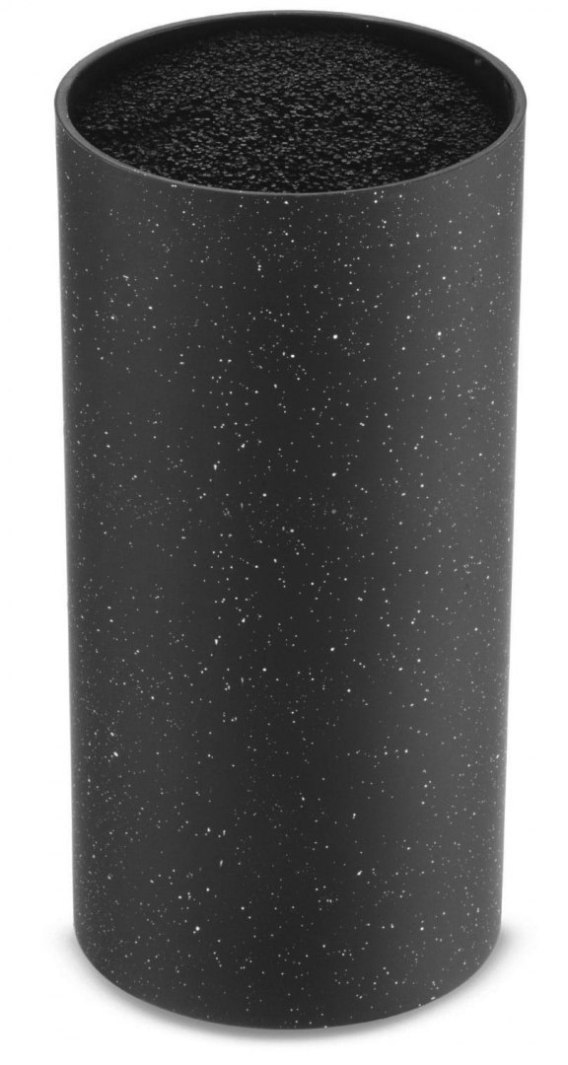 Uniwersalny stojak blok na noże. Wykonany z tworzywa. Wewnątrz stojaka umieszczono wkład z nitek polipropylenu, które umożliwiają przechowywanie noży o dowolnej długości i szerokości jeżeli tylko zmieszczą się w stojaku. Stojak pomieści do 6 noży przeciętnej wielkości.