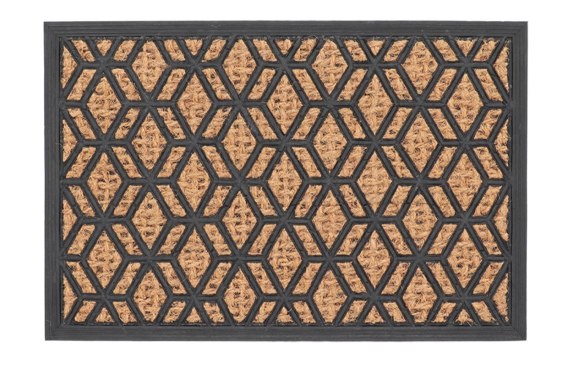 Ta prostokątna wycieraczka z pięknym nadrukiem w romby nadaje się zarówno do użytku wewnątrz, jak i na zewnątrz zapewniając estetyczny wygląd i funkcjonalność. Wycieraczki te są wykonane z trwałych materiałów - guma i włókno kokosowe, co zapewnia ich długowieczność i skuteczność w usuwaniu brudu z obuwia.