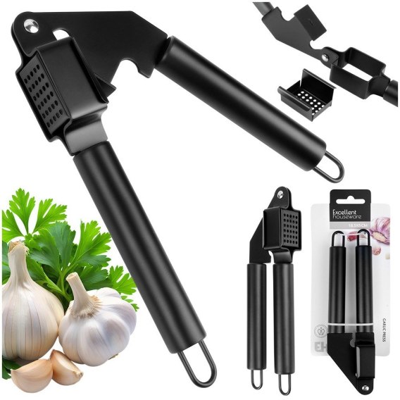 WYCISKACZ DO CZOSNKU STALOWY CZARNY PRASKA WYCISKARKA 19CM EXCELLENT HOUSEWARE 259739