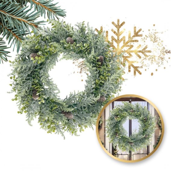 Wianek ozdobny na drzwi, stroik, sztuczna choina jak żywa - średnica 38 cm WSN24