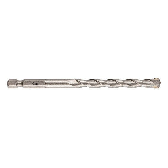 Wiertło do betonu, uchwyt HEX, średnica 8 mm, długość całkowita 120 mm, długość robocza 72 mm, zastosowanie: beton, cegła, kamień.