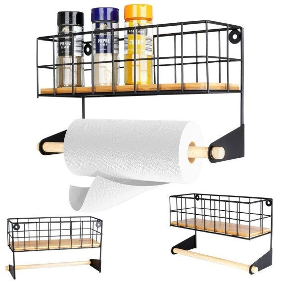 • POMOŻE W ORGANIZACJI - Praktyczna, ścienna półka pomoże w zorganizowaniu miejsca w kuchni, posiada uchwyt na ręcznik papierowy oraz miejsce na przyprawy, artykuły spożywcze czy inne kuchenne gadżety. Wymiar całkowity wynosi 32 x 10 x 18 cm.