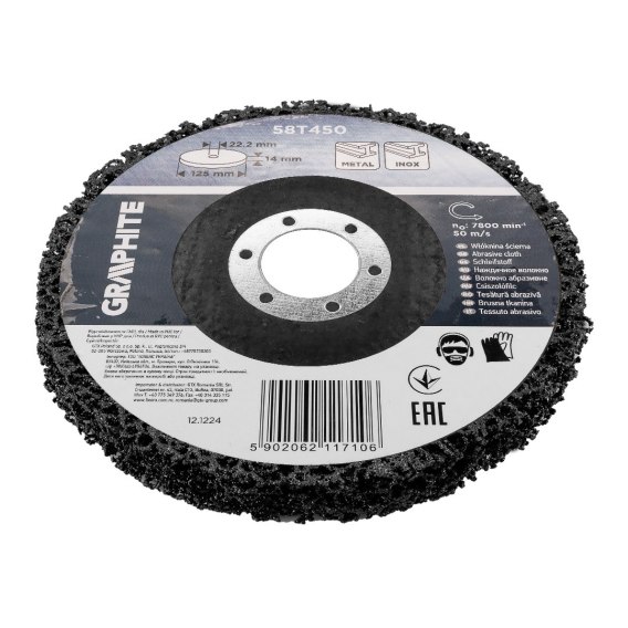 Włóknina ścierna 125 x 14 x 22,2 mm , RPM=7800 obr./min, 50 m/s, zastosownie: metal