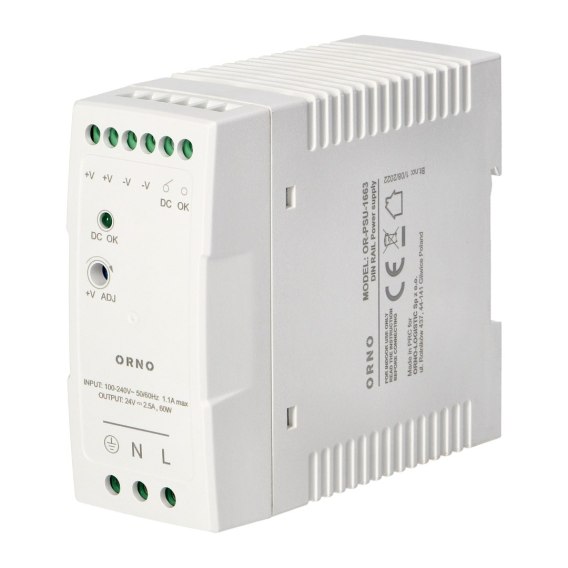 ZASILACZ PRZEMYSŁOWY, NA SZYNĘ DIN, 24VDC, 2,5A, 60W, W PLASTIKOWEJ OBUDOWIE