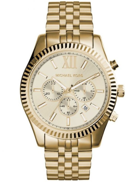 Model Michael Kors MK8281 z serii Lexington to elegancki zegarek na bransolecie w kolorze złotym wykonanej ze stali szlachetnej. Oznaczenia godzinowe w postaci cyfr rzymskich oraz indeksów świetnie komponują się z tarczą i wskazówkami. Wyposażony jest w precyzyjny mechanizm kwarcowy, dzięki któremu zegarek dokładanie pokazuje aktualną godzinę. Dostępne funkcje to chronograf, datownik dnia miesiąca oraz 24-godzinne wskazanie czasu. Tarczę ochrania mineralne, odporne na zarysowania szkiełko.