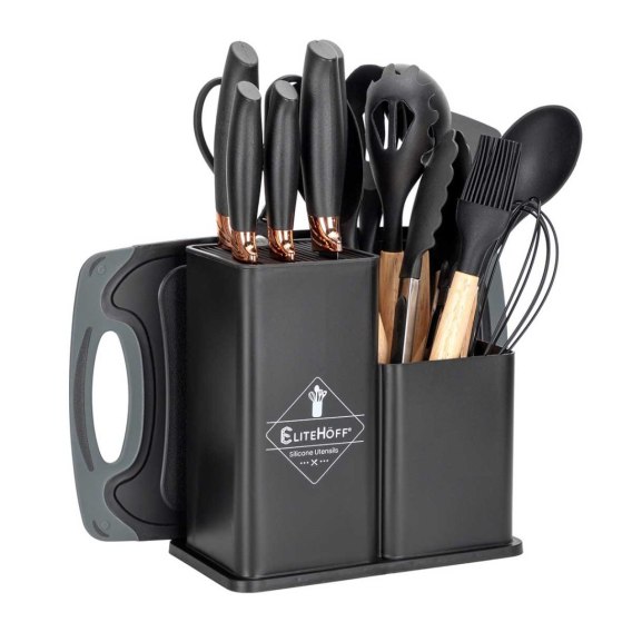ZESTAW 19 ELEM. NOŻY I PRZYBORÓW KUCHENNYCH W STOJAKU E-6069