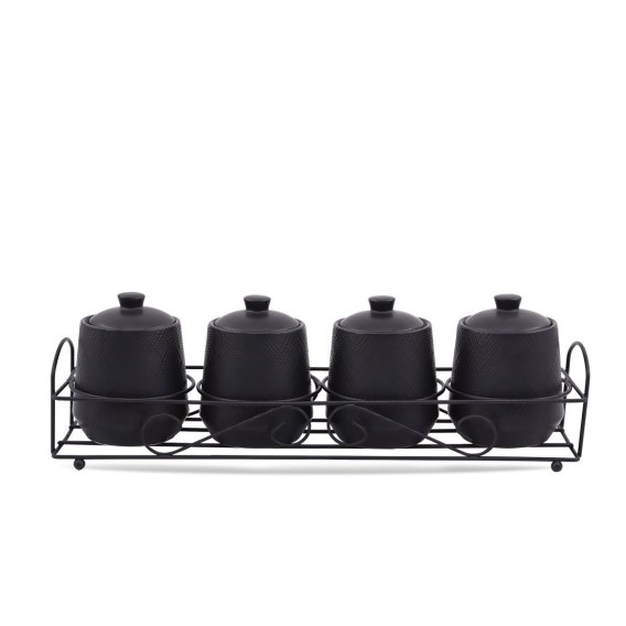 Zestaw 4 ceramicznych pojemników na przyprawy marki MAESTRO z metalowym stojakiem