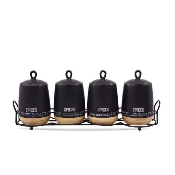 Zestaw 4 ceramicznych pojemników na przyprawy marki MAESTRO z metalowym stojakiem