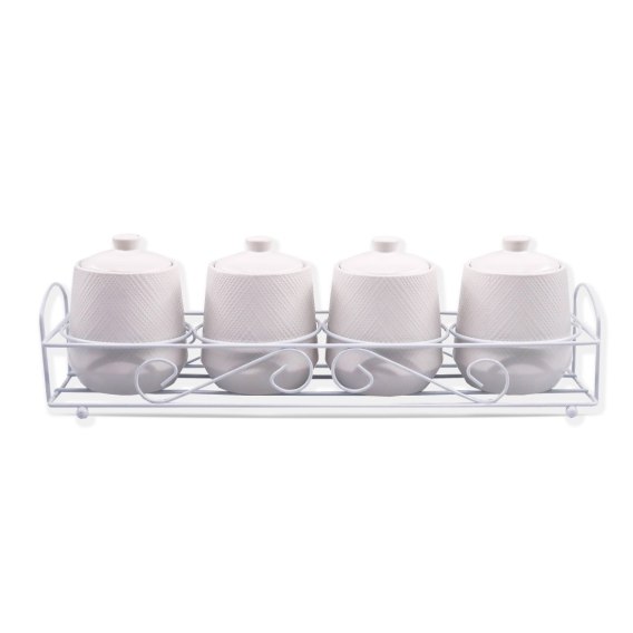 Zestaw 4 ceramicznych pojemników na przyprawy marki MAESTRO z metalowym stojakiem