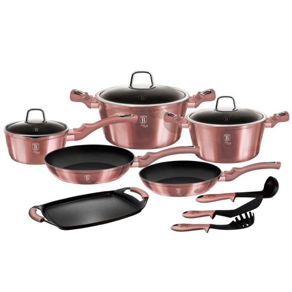 12 elementowy zestaw garnków z linii I-Rose Metallic z powłoką tytanową. W zestawie taca grillowa oraz akcesoria kuchenne.