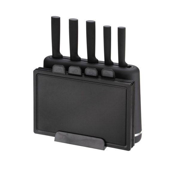 ZESTAW NOŻY Z DESKAMI KUCHENNYMI NA PODSTAWCE 10-ELE CZARNY MAESTRO MR-1412-BL