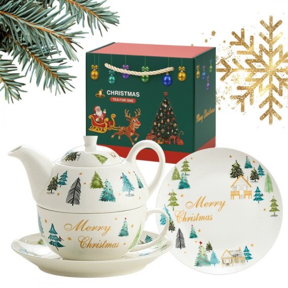 ZESTAW ŚWIĄTECZNY - dzbanek z filiżanką i talerzykiem w ozdobnym pudełku KB27