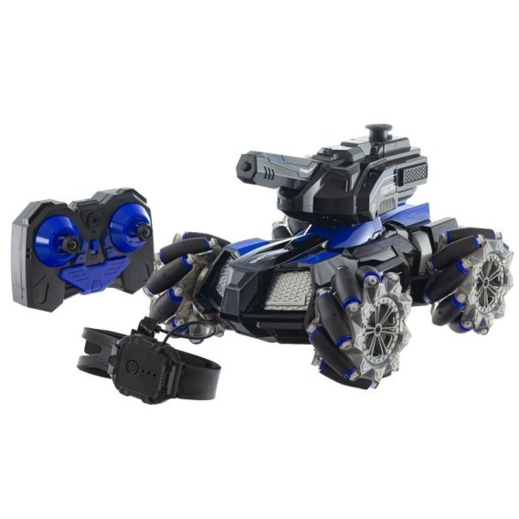 Szybki i zwrotny czołg sterowany posiada specjalne rolki w kołach, które umożliwiają jazdę na boki oraz obracanie o 360 stopni.