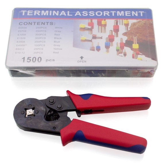 Szczypce do zaciskania są dostarczane z zestawem 1500 różnych końcówek drutu.