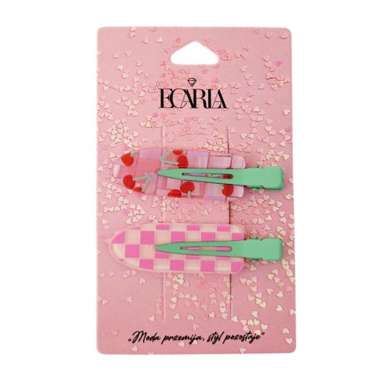 Zestaw 2 spinek wsuwek, klamerek do włosów, wisienki, krata SP392