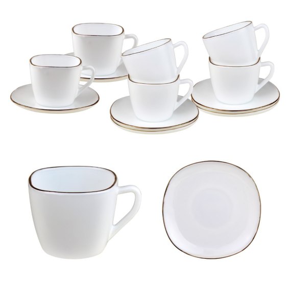 Zestaw 6 filiżanek 12 elementów, kwadrat, opal, białe ze złotym zdobieniem, KINGHOFF KH-1930